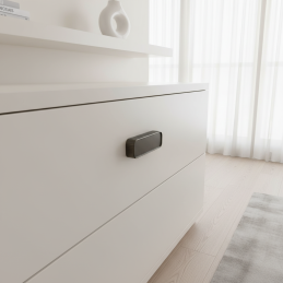Moderná dizajnová úchytka s jemne zaoblenými hranami a výrazným rebrovaním po obvode, ktoré zabezpečuje pohodlný a istý úchop. Vďaka svojmu čistému tvaru a matnej čiernej povrchovej úprave sa hodí do moderných aj industriálnych interiérov. Úchytka je vhodná na skrinky, zásuvky aj komody a je možné ju kombinovať aj s knopkou LOGAN v rovnakom dizajne.
