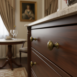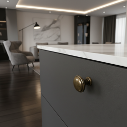 Elegantná klasická knopka z kolekcie ARLES v povrchovej úprave mosadz patina lesklá. Je vhodná pre rustikálny, vintage aj vidiecky nábytok a vďaka svojmu nadčasovému tvaru krásne doplní komody, skrinky či kuchynské linky. Masívne kovové telo zaručuje dlhú životnosť a príjemné uchopenie.