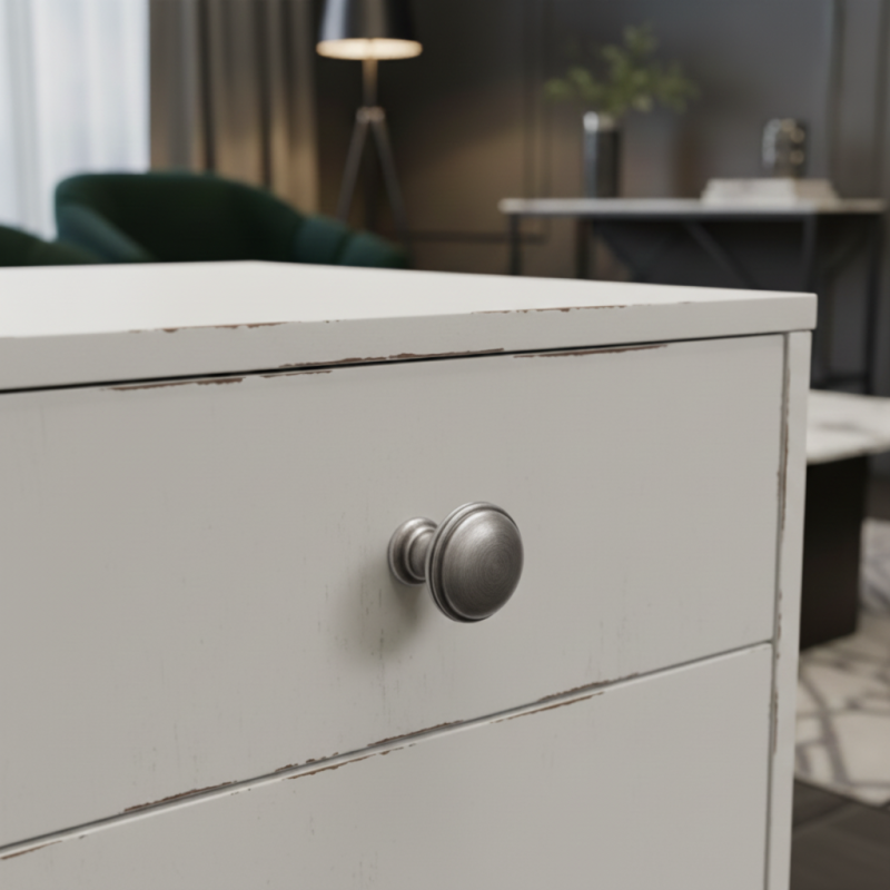 Štýlová klasická knopka zo série ARLES v povrchovej úprave staro strieborná. Vďaka elegantnému tvarovaniu a jemnému antickému vzhľadu skvelo doplní vidiecky, vintage či retro nábytok. Pevné kovové prevedenie zabezpečuje dlhú životnosť a pohodlné uchopenie pri každodennom používaní.