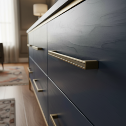 Úchytka NEVES v staromosadznom prevedení je ideálnou voľbou pre tých, ktorí hľadajú štýlový, odolný a výrazný detail, ktorý pozdvihne vzhľad každého kusu nábytku.