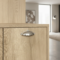 Úchytka MELANIE v lesklom chróme je moderným a zároveň elegantným doplnkom, ktorý dodá vášmu nábytku čistý, luxusný a nadčasový vzhľad. Oblý „miskový“ tvar úchytky zabezpečuje pohodlné a prirodzené uchopenie, zatiaľ čo vysoko lesklý chróm vytvára atraktívny zrkadlový efekt.