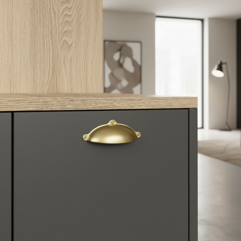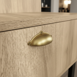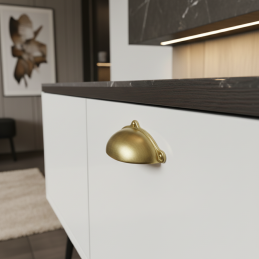 Úchytka MELANIE v elegantnej zlatej matnej úprave dodáva nábytku sofistikovaný a moderný vzhľad s jemným luxusným akcentom. Jej ikonický „miskový“ tvar ponúka pohodlný úchop a zároveň vytvára dekoratívny prvok, ktorý krásne doplní komody, skrinky, kuchynský nábytok či šuplíky.