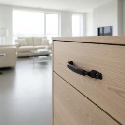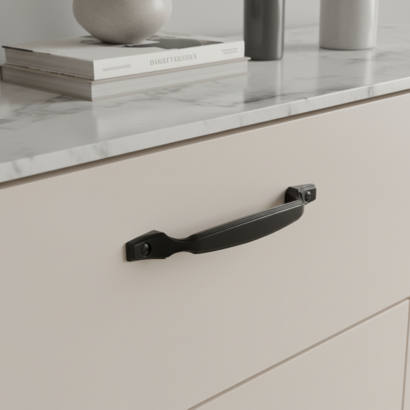 Úchytka CANDACE v prevedení čierna matná je elegantná a nadčasová voľba pre každý štýl interiéru – od moderného až po klasický či rustikálny. Jej jemne profilované línie a charakteristické tvarovanie koncov dodávajú úchytke vizuálnu ľahkosť a sofistikovaný vzhľad. Matná čierna povrchová úprava vytvára výrazný kontrast a dodáva nábytku luxusný, moderný a zároveň univerzálny akcent.