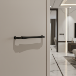 Úchytka NEUS v prevedení čierna matná prináša do interiéru moderný, odvážny a pritom elegantný výraz. Jej jemne prehnuté telo a charakteristicky tvarované konce pôsobia nadčasovo, no v čiernej matnej farbe získava úchytka výrazne súčasný až industriálny charakter. Tento povrch krásne kontrastuje so svetlými dvierkami aj prírodným drevom a dodáva nábytku prémiový, dizajnový akcent.
