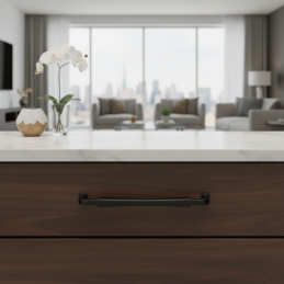 Ergonomický tvar zabezpečuje pohodlný úchop, čo z nej robí skvelú voľbu pre kuchyne, predsiene, kúpeľne aj obývacie zostavy. Čierna matná úprava je odolná, ľahko sa udržiava a dokonale zapadá do moderného bývania.