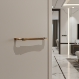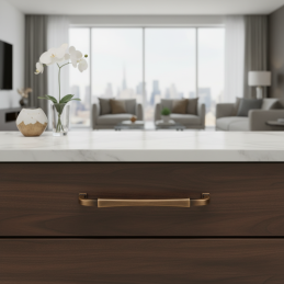 Úchytka je ergonomicky navrhnutá tak, aby sa pohodlne držala, čo z nej robí praktické riešenie pre zásuvky aj dvierka kuchynského či sektorového nábytku. NEUS skvelo ladí s drevom, tmavými odtieňmi a interiérmi s tradičnými detailmi.