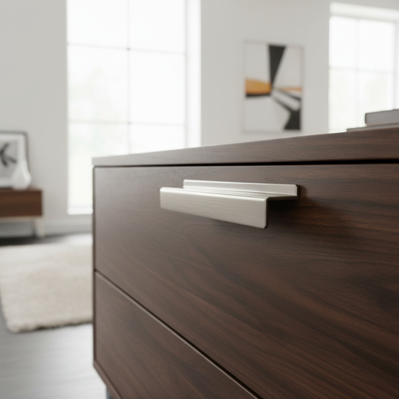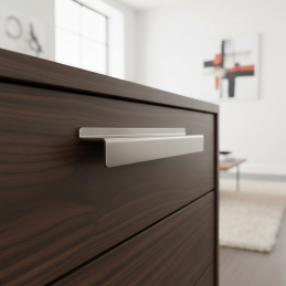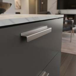 Úchytka BRUNA v prevedení nikel brúsený je elegantné a moderné riešenie pre kuchynský, kúpeľňový aj obývací nábytok. Je navrhnutá ako minimalistická hranatá L-úchytka, ktorá sa montuje na hornú hranu dvierok alebo zásuvky. Jej tvar zaručuje pohodlné uchopenie bez klasických viditeľných madiel, čím vytvára čistý a súčasný dizajn.