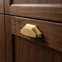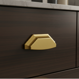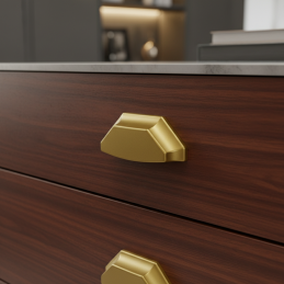 Elegantná dizajnová úchytka MOET v luxusnom starozlatom prevedení dodá nábytku výrazný a moderný charakter. Vďaka svojmu geometrickému tvaru a jemne matnému povrchu pôsobí prémiovo a je ideálnou voľbou pre kuchynské linky, komody, skrinky aj dizajnový nábytok.