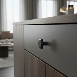 Elegantná knopka RUNA v prevedení čierna matná je štýlovým doplnkom pre moderný aj klasický nábytok. Jemne tvarovaný dizajn s decentnými detailmi pôsobí nadčasovo a zároveň výrazne zvýrazní vzhľad dvierok či zásuviek.