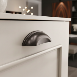 Štýlová nábytková úchytka DIAMO v klasickom mušľovom tvare je vhodná do kuchýň, komôd, zásuviek aj rustikálne ladeného nábytku. Zaoblené línie a dekoratívny detail dodávajú nábytku výrazný charakter.