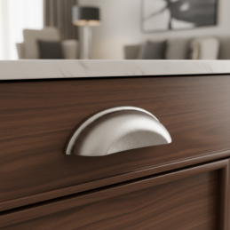 Elegantná nábytková úchytka DIAMO v klasickom mušľovom tvare je ideálnou voľbou pre kuchyne, komody, zásuvky aj rustikálne ladený nábytok. Jej jemne zaoblené línie a dekoratívny okraj dodávajú nábytku tradičný a nadčasový vzhľad.