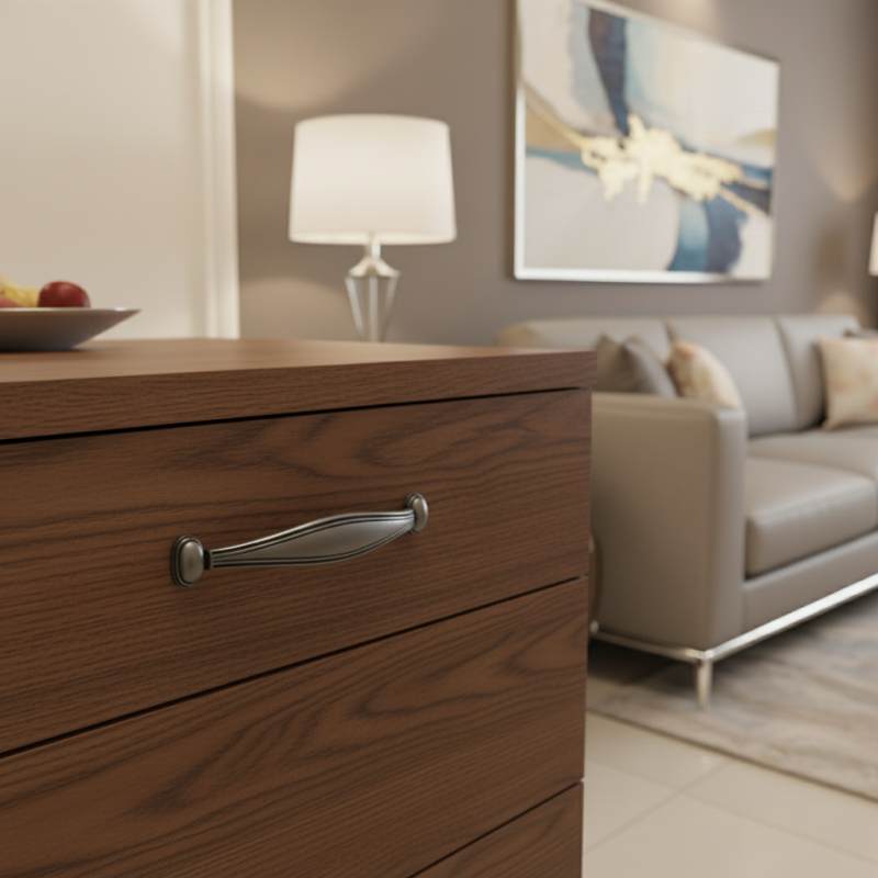 Elegantná úchytka v rustikálnom štýle vhodná pre skrinky, komody, kuchynské linky alebo iný nábytok, kde chcete zachovať klasický alebo vintage dizajn.