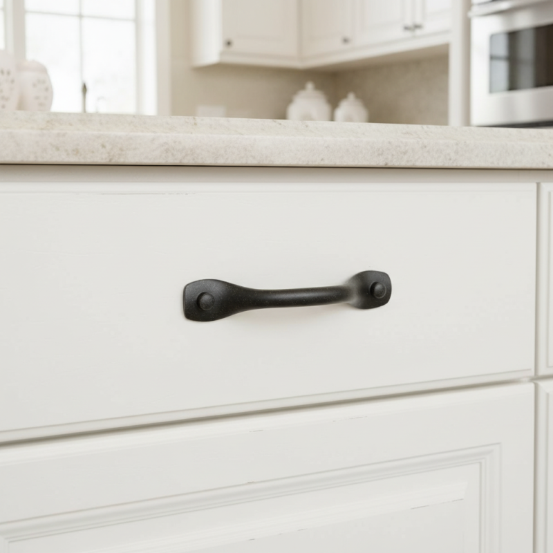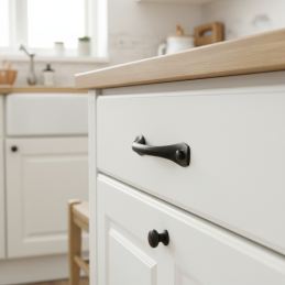 Úchytka SULKY v povrchovej úprave staročierna je dokonalou voľbou pre tých, ktorí chcú do svojho interiéru vniesť prvok tradičného remeselného štýlu. Kombinuje jemne tvarovaný oblúk s rustikálnym povrchom, ktorý dodáva nábytku autentický, mierne industriálny výraz.
