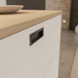 Elegantná minimalistická úchytka určená na zafrézovanie do plochy dvierok alebo zásuviek. V čiernom brúsenom prevedení pôsobí moderne, nadčasovo a perfektne dopĺňa nábytok v industriálnom, minimalistickom aj high-end interiéri.