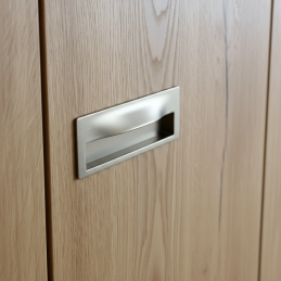 Moderná zapustená úchytka GALOS v elegantnom prevedení nikel brúsený je ideálnym riešením pre posuvné dvere, zásuvky či nábytkové dvierka, kde je požadovaný čistý a minimalistický vzhľad. Vďaka zapustenému prevedeniu nevystupuje z plochy nábytku, čím je vhodná aj do úzkych priestorov.