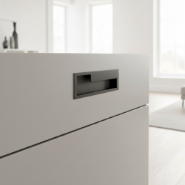 Moderná dizajnová úchytka DIESEL v prevedení antracit matný je určená na zafrézovanie priamo do dvierok nábytku. Zapustené riešenie vytvára čistý, minimalistický vzhľad bez vystupujúcich prvkov a zároveň zabezpečuje pohodlné a ergonomické uchopenie.