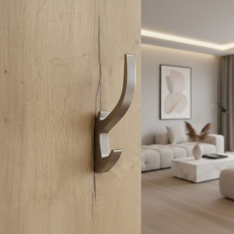 Elegantný a moderný vešiak KOS v nikel brúsenom prevedení pôsobí nadčasovo a dokonale zapadne do minimalistických aj prémiových interiérov. Jemne matný kovový povrch je odolný voči odtlačkom a krásne zvýrazňuje tvar dvojitého háčika, ktorý poskytuje praktické odkladanie oblečenia, uterákov či doplnkov.