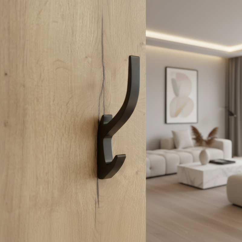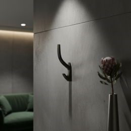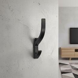 Elegantný a moderný vešiak KOS v čiernom matnom prevedení je ideálnym doplnkom do každého interiéru. Jeho nadčasový tvar pôsobí štýlovo a zároveň veľmi prakticky — ponúka dva háčiky na odkladanie oblečenia či doplnkov.