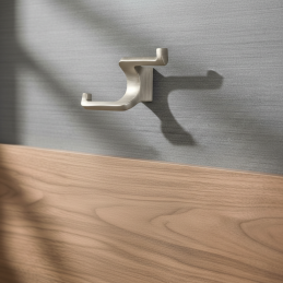 Elegantný dizajnový vešiak ESOLINE v modernom prevedení nikel brúsený zaujme čistým architektonickým tvarom a jemne matným povrchom, ktorý pôsobí nadčasovo a decentne. Jeho originálny „S“ profil s dvomi háčikmi poskytuje praktický priestor na zavesenie oblečenia a zároveň slúži ako výrazný dizajnový prvok.