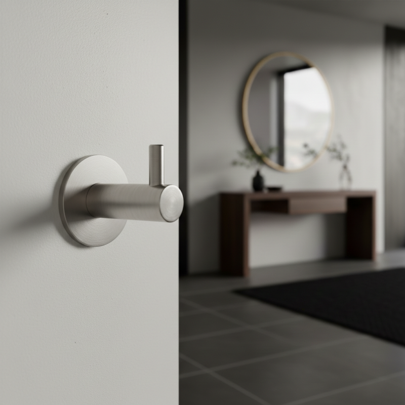 Elegantný nástenný vešiak MAGDA v nadčasovom prevedení nerez vyniká čistým, technickým dizajnom a kompaktnými rozmermi. Valcový tvar v kombinácii s krátkym horným háčikom pôsobí minimalisticky a funkčne, vďaka čomu sa vešiak prirodzene začlení do moderných aj industriálnych interiérov.