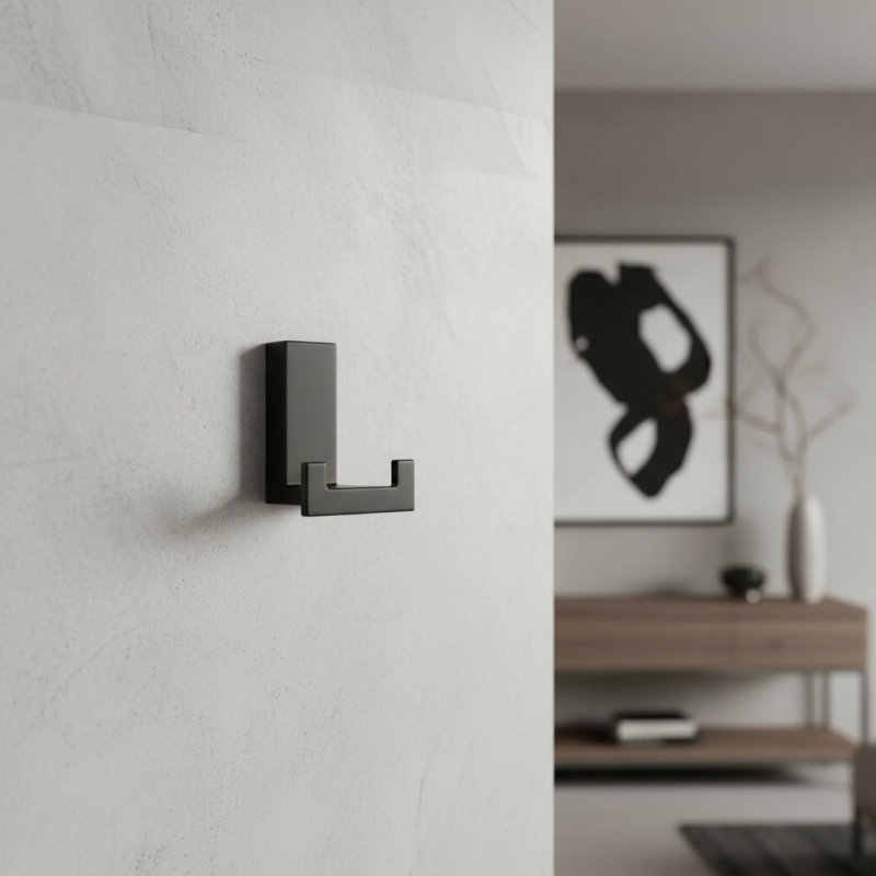 Elegantný a kompaktný dizajnový vešiak vhodný do moderných interiérov. Vďaka minimalistickému tvaru je ideálny do predsiení, kúpeľní, šatníkov či na nábytok, kde je kladený dôraz na čistý vzhľad a funkčnosť.
