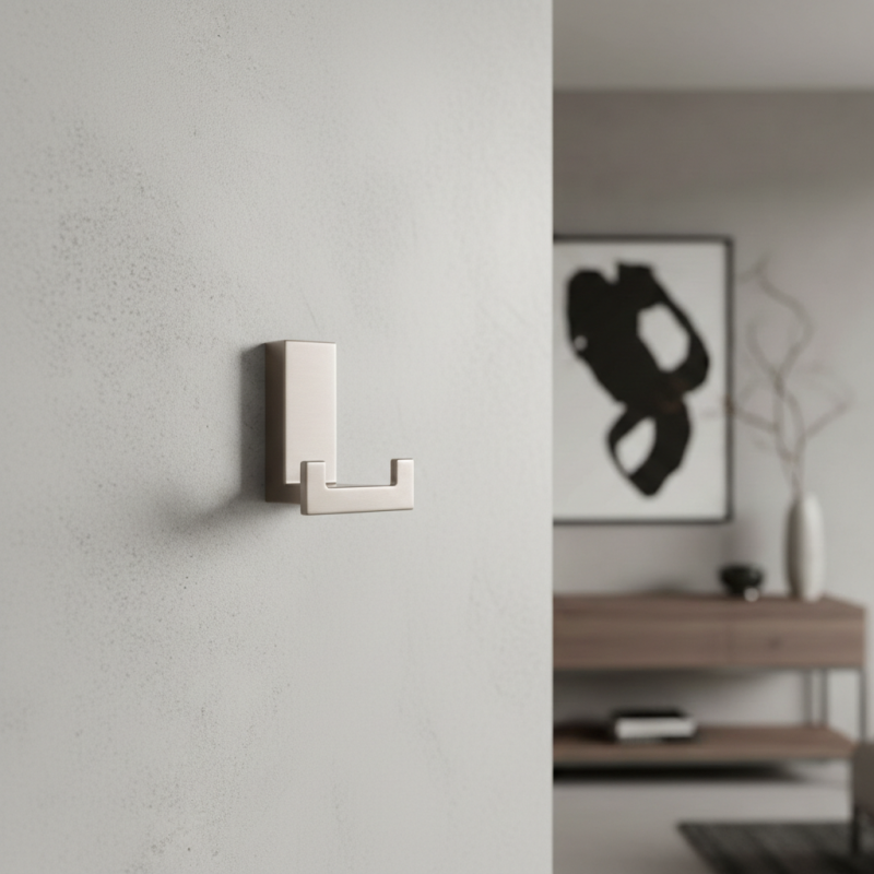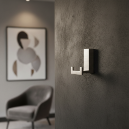 Kompaktný a elegantný dizajnový vešiak v prevedení brúsený nikel, ktorý pôsobí moderne a nadčasovo. Vďaka menším rozmerom je ideálny do predsiení, kúpeľní, šatníkov alebo na nábytok, kde je dôležitý čistý dizajn a funkčnosť.