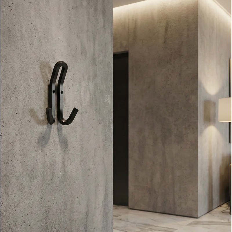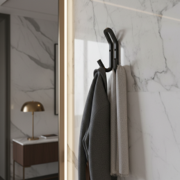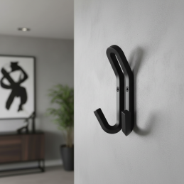 Kovový dizajnový vešiak v modernom prevedení, vhodný do predsiení, chodieb, kúpeľní aj šatníkov. Vďaka pevnému kovovému vyhotoveniu je odolný a určený na každodenné používanie. Dvojitý hák umožňuje praktické zavesenie oblečenia, tašiek či doplnkov.