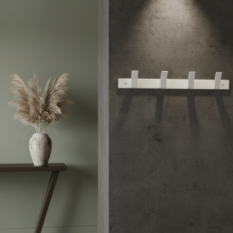 AVALION XL je moderný a praktický nástenný vešiak s čistým minimalistickým dizajnom, ktorý poskytuje dostatok priestoru na zavesenie oblečenia, kabátov, tašiek či doplnkov. Vďaka štyrom háčikom a predĺženému telu je ideálny do predsiení, šatní, spální, kancelárií aj komerčných priestorov.