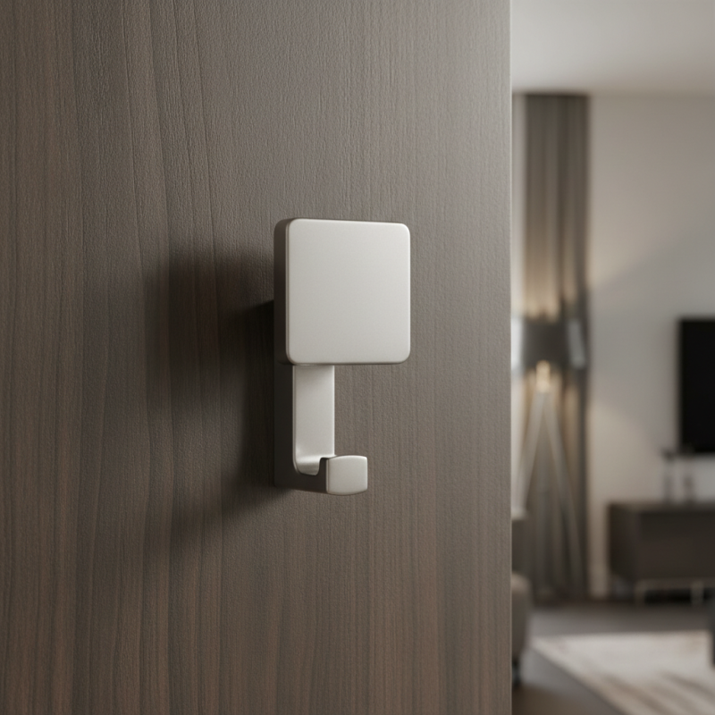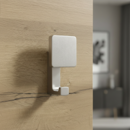 Montáž je riešená zo zadnej strany steny, dosky alebo nábytku pomocou dvoch skrutiek, vďaka čomu ostáva upevnenie skryté a dizajn vešiaku čistý a nerušivý.