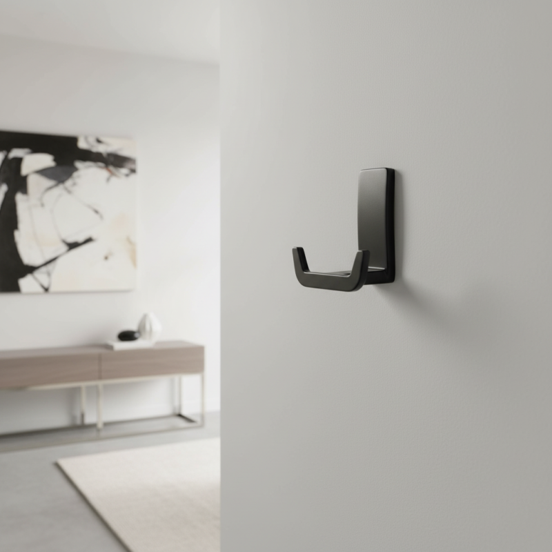 Elegantný a kompaktný vešiak TANIA L v povrchovej úprave čierna matná je štýlovým doplnkom pre moderné interiéry. Minimalistický tvar, pevná kovová konštrukcia a jemné matné prevedenie z neho robia ideálnu voľbu do predsiene, kúpeľne, kuchyne či kancelárie.