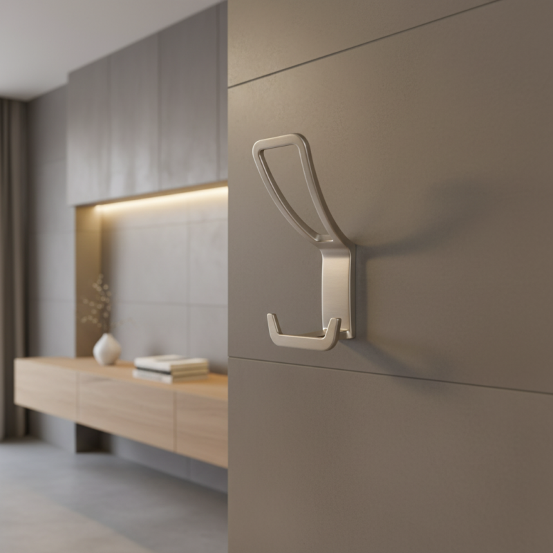 Elegantný a moderný vešiak TANIA XL v povrchovej úprave nikel brúsený prináša do interiéru nadčasový vzhľad a prémiový charakter. Vďaka čistým líniám a jemne brúsenému kovovému povrchu pôsobí luxusne, no zároveň zostáva mimoriadne praktický.