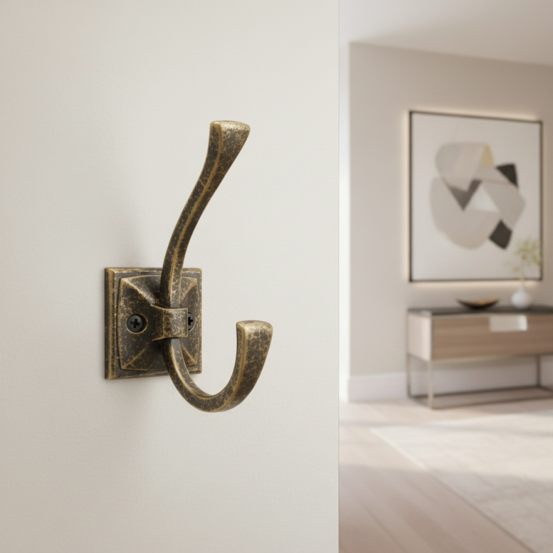 Elegantný a nadčasový vešiak MALAGA v povrchovej úprave staromosadzná je ideálnym doplnkom pre interiéry, ktoré chcú spojiť praktickosť s dekoratívnym historickým vzhľadom.