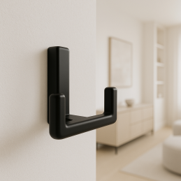 Vešiak je vybavený dvoma pevnými háčikmi, ktoré umožňujú zavesenie viacerých predmetov naraz – kabátov, búnd, kabeliek, kľúčov či uterákov.