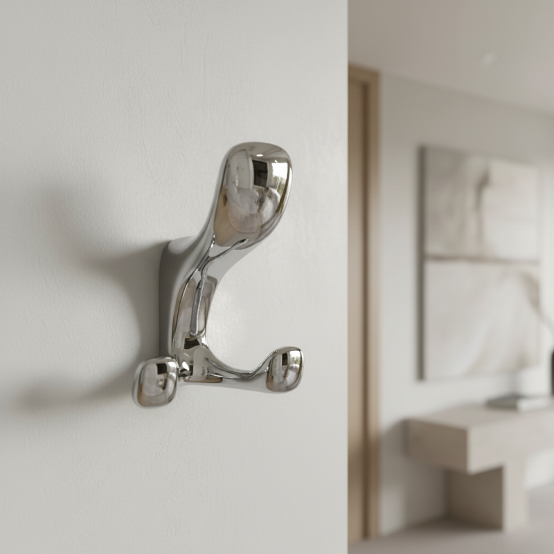 Dizajnový vešiak MESSINA v elegantnom prevedení lesklý chróm je výrazným a štýlovým doplnkom moderných interiérov. Jeho organický, plynulo tvarovaný dizajn pôsobí esteticky a zároveň prakticky, vďaka čomu sa stáva funkčným detailom aj dekoratívnym prvkom.