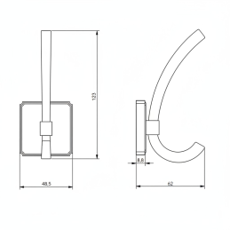 Vešiak je vybavený dvojitým háčikom, ktorý poskytuje dostatok miesta na zavesenie kabátov, uterákov, županov, kabeliek alebo doplnkov. Pevná kovová konštrukcia zaručuje dlhú životnosť a spoľahlivé používanie.