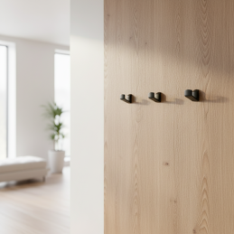Montáž prebieha zozadu panelu alebo nábytku pomocou priloženej skrutky, čo zabezpečuje čistý vzhľad bez viditeľných upevňovacích prvkov.