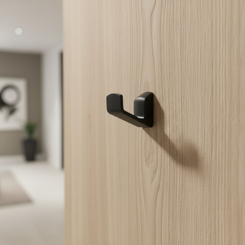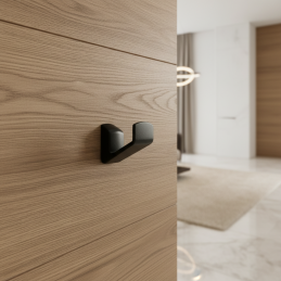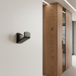 Minimalistický a elegantný vešiak TREVOR v povrchovej úprave čierna matná je ideálny doplnok pre moderný nábytok, predsiene, kúpeľne, šatníky či kancelárie.