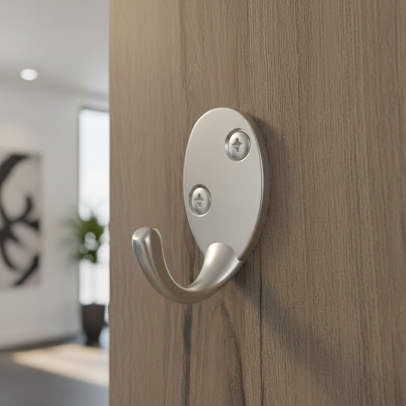 Jednoduchý vešiak s montážou z predu s výškou 39 mm a šírkou 25 mm. Skrutky na uchytenie sú súčasťou vešiaku.