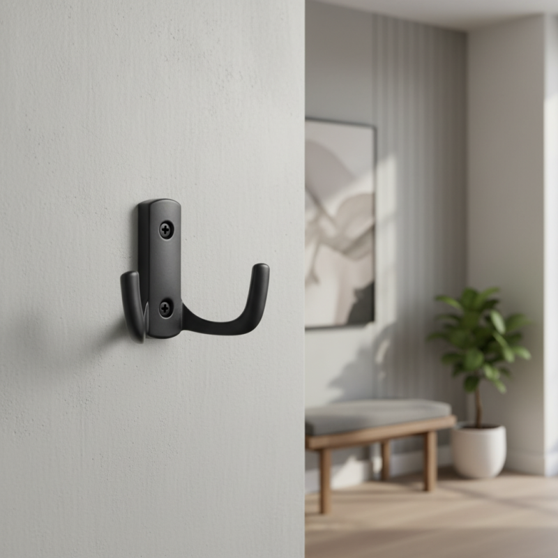 Dvojitý háčik poskytuje dostatok priestoru na zavesenie oblečenia, uterákov, tašiek či drobných doplnkov, pričom vďaka svojmu čistému tvaru zapadne prakticky kdekoľvek – do kúpeľne, predsiene, kuchyne, kancelárie či detskej izby.