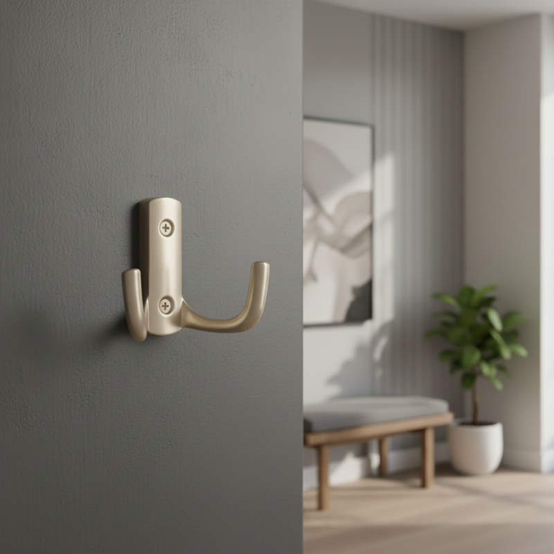 Vďaka kompaktným rozmerom a dvojitému háčiku ponúka praktické odkladanie oblečenia, uterákov, tašiek alebo drobných doplnkov aj v menších priestoroch.