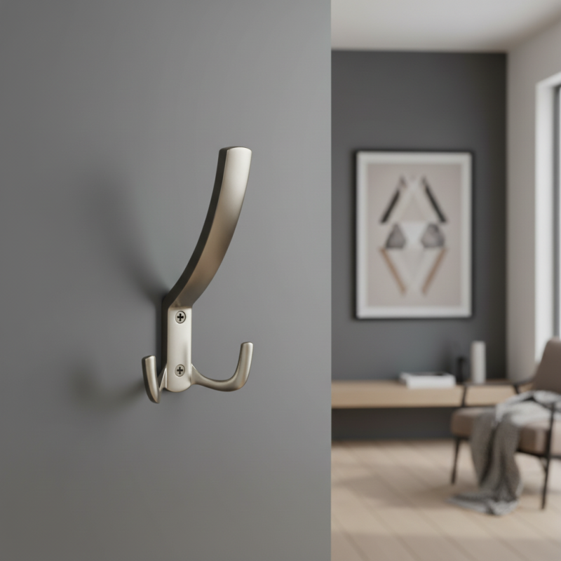 Matný nikel dodáva vešiaku jemný, elegantný a univerzálny vzhľad, ktorý sa ľahko kombinuje s rôznymi farbami a materiálmi v interiéri.