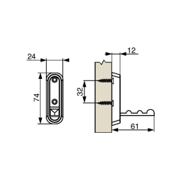 Jednoduchý vešiak s montážou z predu s výškou 74 mm a šírkou 24 mm. Skrutky na uchytenie sú súčasťou vešiaku. Vešiak sa stlačením jednoducho vyklápa. Vešiak sa montuje na povrch a nie je nutné ho frézovať do nábytku či materiálu.