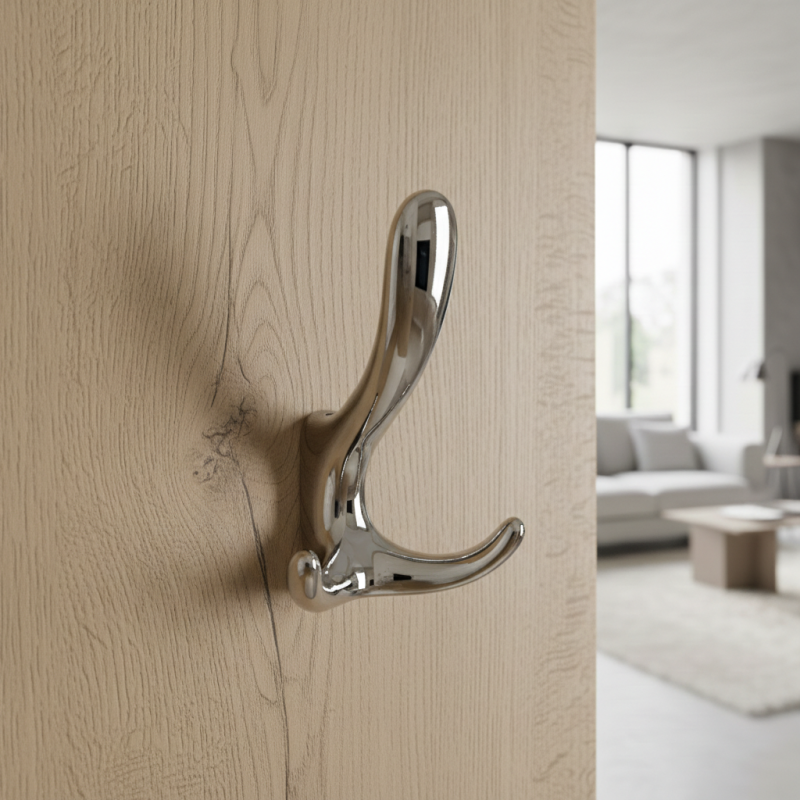 Jeho tvar umožňuje pohodlné zavesenie odevov, uterákov, kabeliek aj doplnkov, pričom pôsobí elegantne a esteticky čisto.