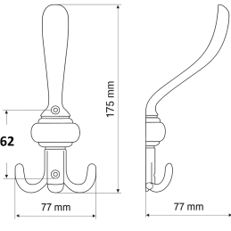 Montáž je z predu pomocou skrutiek, ktoré zabezpečujú jednoduché a pevné uchytenie. Vešiak je vhodný na zavesenie búnd, kabátov, tašiek alebo doplnkov.