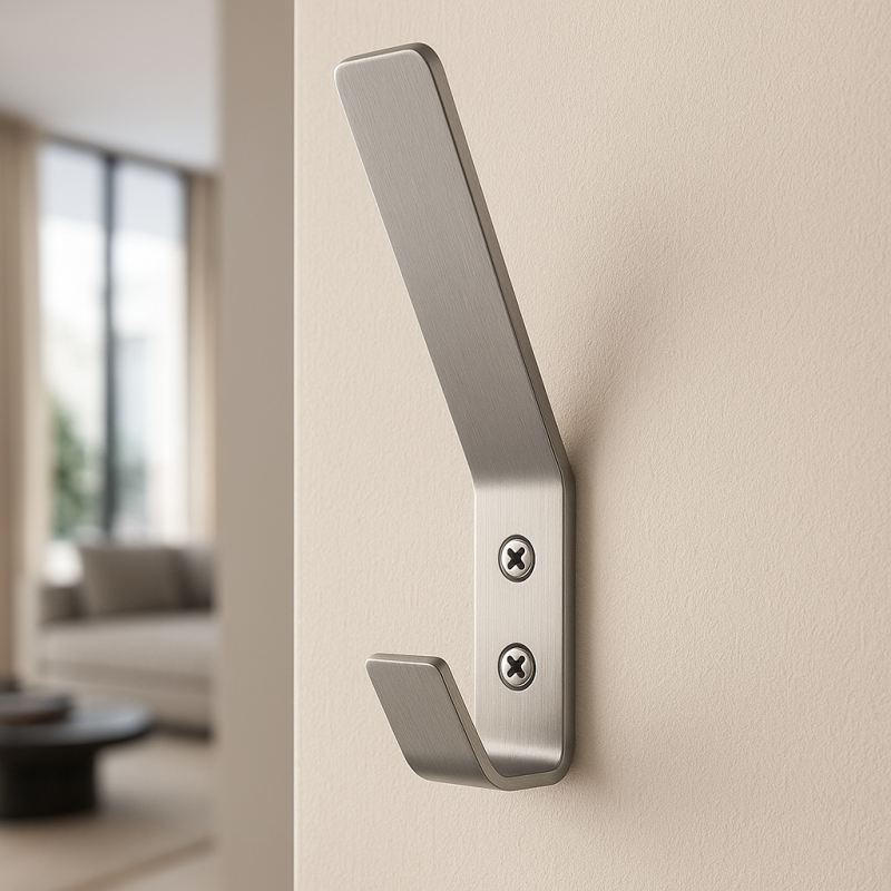Elegantný a pevný nábytkový vešiak z kvalitnej brúsenej nereze, ktorý kombinuje moderný dizajn s vysokou funkčnosťou. Vďaka svojmu minimalistickému a zároveň robustnému vzhľadu je ideálny do predsiene, šatníka, kúpeľne alebo kancelárie.