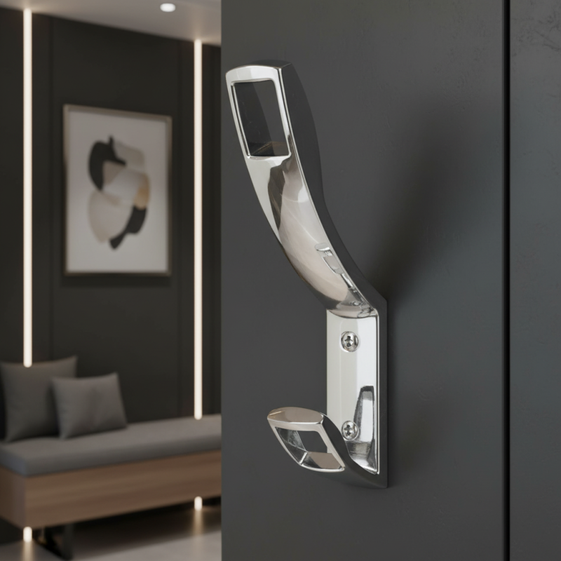 Vešiak PAOLOS v lesklom chróme je ideálnou voľbou pre tých, ktorí hľadajú elegantný, odolný a vizuálne výrazný doplnok, ktorý podčiarkne moderný charakter interiéru.