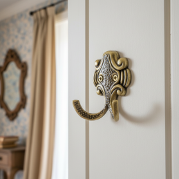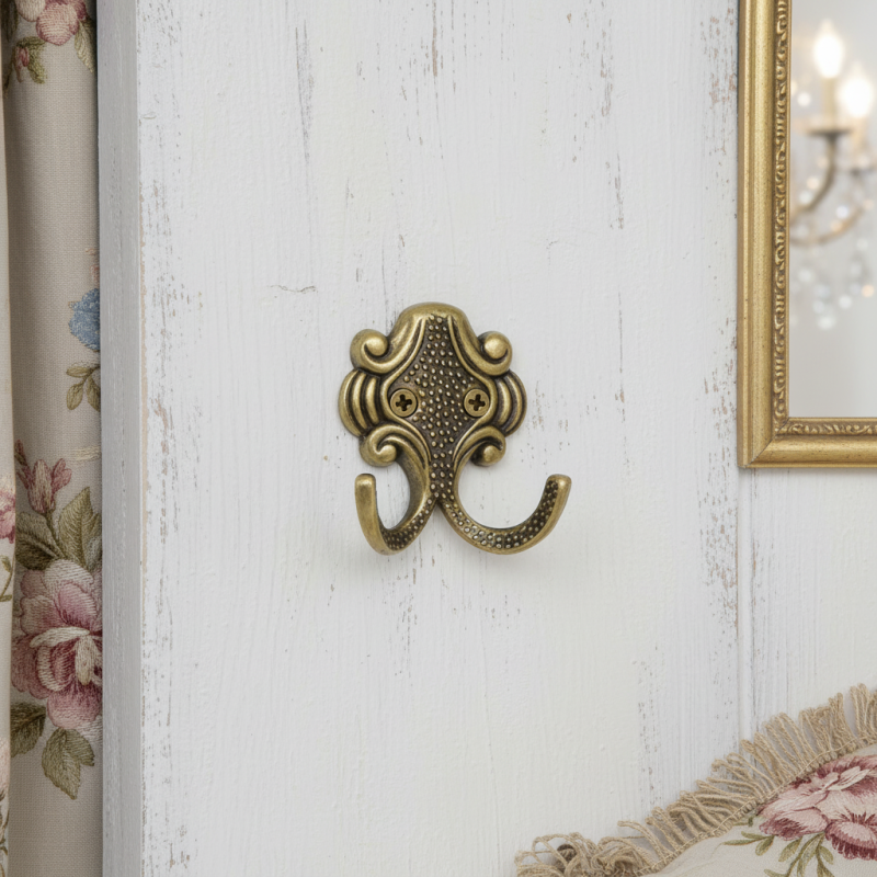 Rustikálny vešiak VENICE Mini v povrchovej úprave staromosadz je dekoratívny doplnok, ktorý dodá nábytku či stene nádych elegancie a tradičného remeselného štýlu. Bohato tvarovaný ornament, jemné reliéfne detaily a dvojramenné vyhotovenie ho predurčujú do vidieckych, vintage a klasických interiérov.