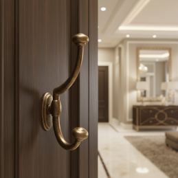 Rustikálny vešiak PLUTO v elegantnom prevedení staromosadz je štýlovým a praktickým doplnkom do interiéru s klasickým alebo vidieckym charakterom. Jemne patinovaný povrch dodáva vešiaku autentický vzhľad a zvýrazňuje jeho dekoratívny tvar s dvomi háčikmi.