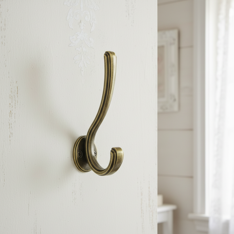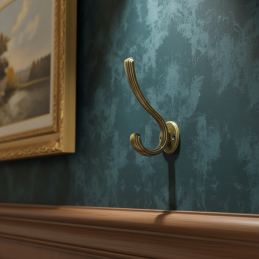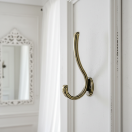 Elegantný nábytkový vešiak ARLES v povrchovej úprave mosadz patina lesklá je ideálnym doplnkom pre rustikálne, vintage či klasické interiéry. Jeho decentné tvarovanie a kvalitné mosadzné prevedenie dodávajú nábytku alebo dverám štýlový a ušľachtilý vzhľad.
