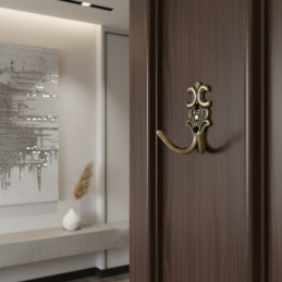 Vešiak VERDI MINI v povrchovej úprave staromosadz je elegantným riešením pre všetkých, ktorí chcú vniesť do interiéru historizujúci alebo vintage nádych aj na menších prvkoch. Jeho reliéfne zdobenie a prepracované detaily pripomínajú klasické remeselné spracovanie, vďaka čomu pôsobí ako malý umelecký doplnok.